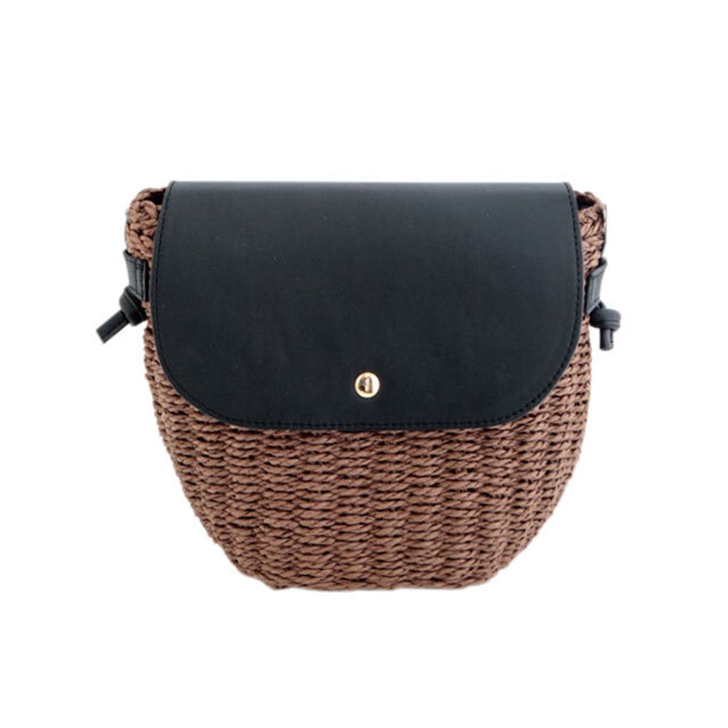包身採用紙編織藤籃的風格,與光滑皮革材質對比結合。