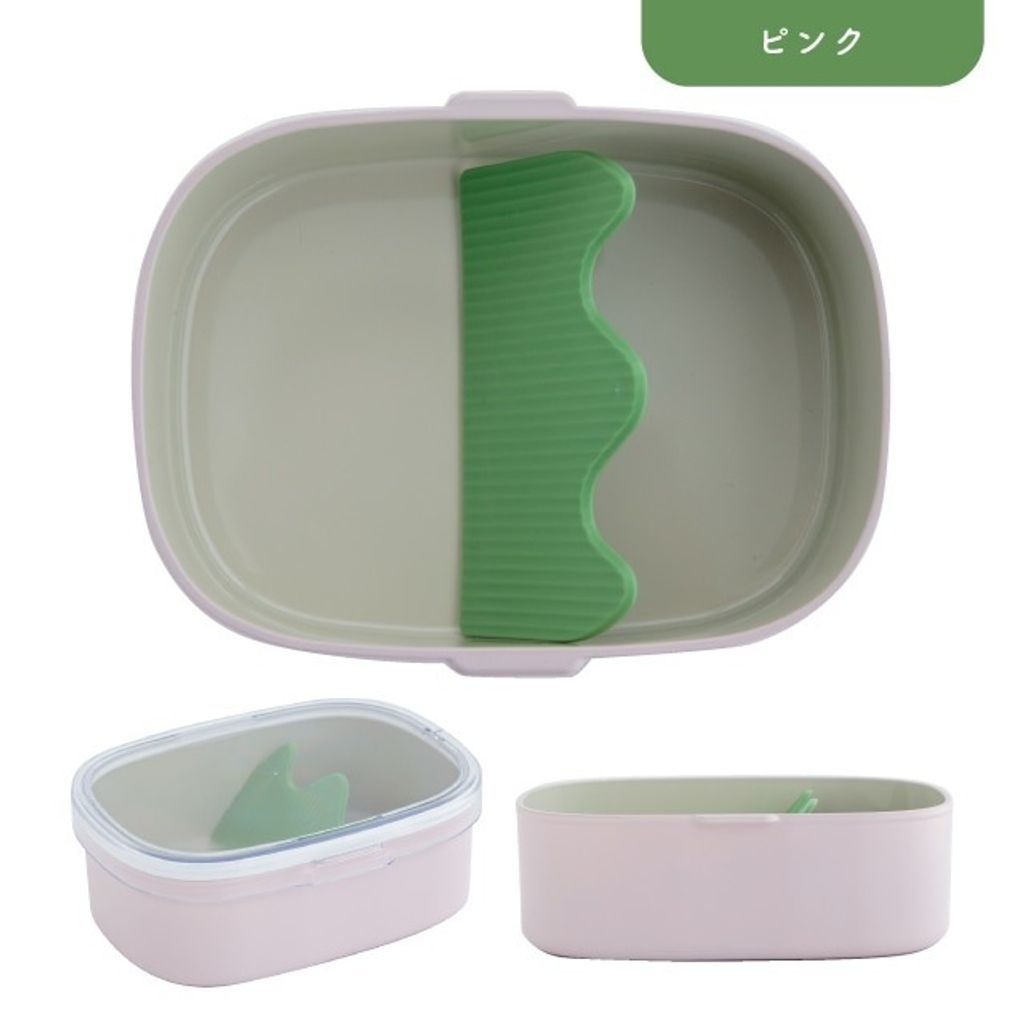 綠色的山形分隔板,可自由的將其添加米飯及配菜,並以立體斜角的方式排列。